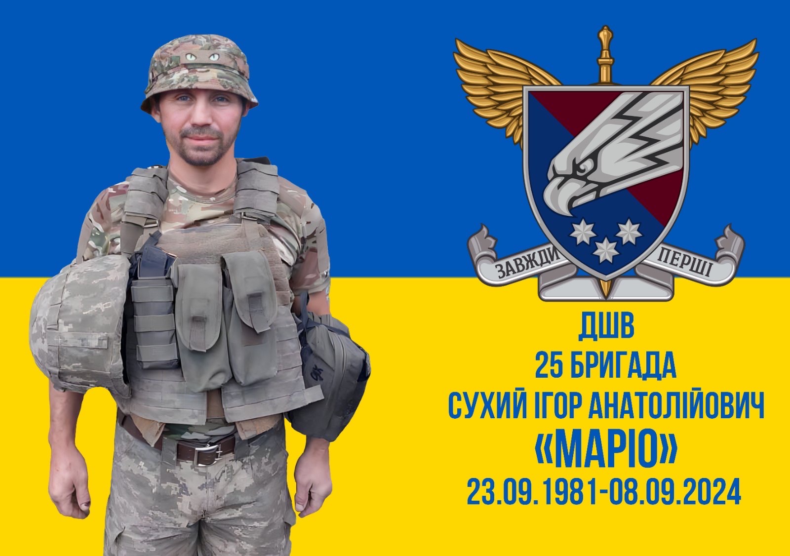 08 вересня 2024 року, виконуючи військовий обов’язок у бою за Україну, за її свободу й незалежність, Сухий Ігор Анатолійович загинув поблизу населеного пункту Орлівка Покровського району Донецької області.