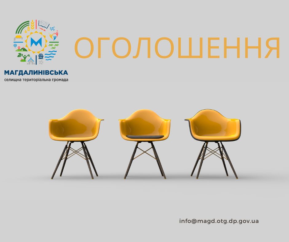 Відповідно до Законів України «Про місцеве самоврядування в Україні», «Про правовий режим воєнного стану» на підставі рішення Магдалинівської селищної ради від 04 лютого 2022 року № 2668-14/VIII «Про затвердження Положення про призначення та звільнення з посад керівників комунальних підприємств, установ, закладів, що перебувають у комунальній власності Магдалинівської селищної ради, Порядку про проведення конкурсу на зайняття посад керівників комунальних підприємств, установ та закладів та форми контракту з керівником комунального підприємства, установи, закладу» (з урахуванням внесених змін).